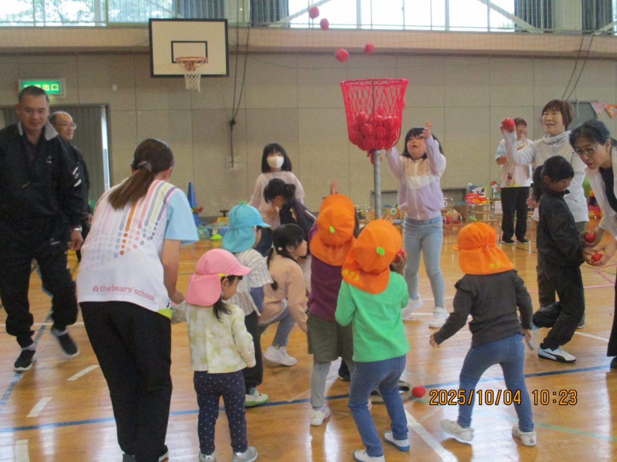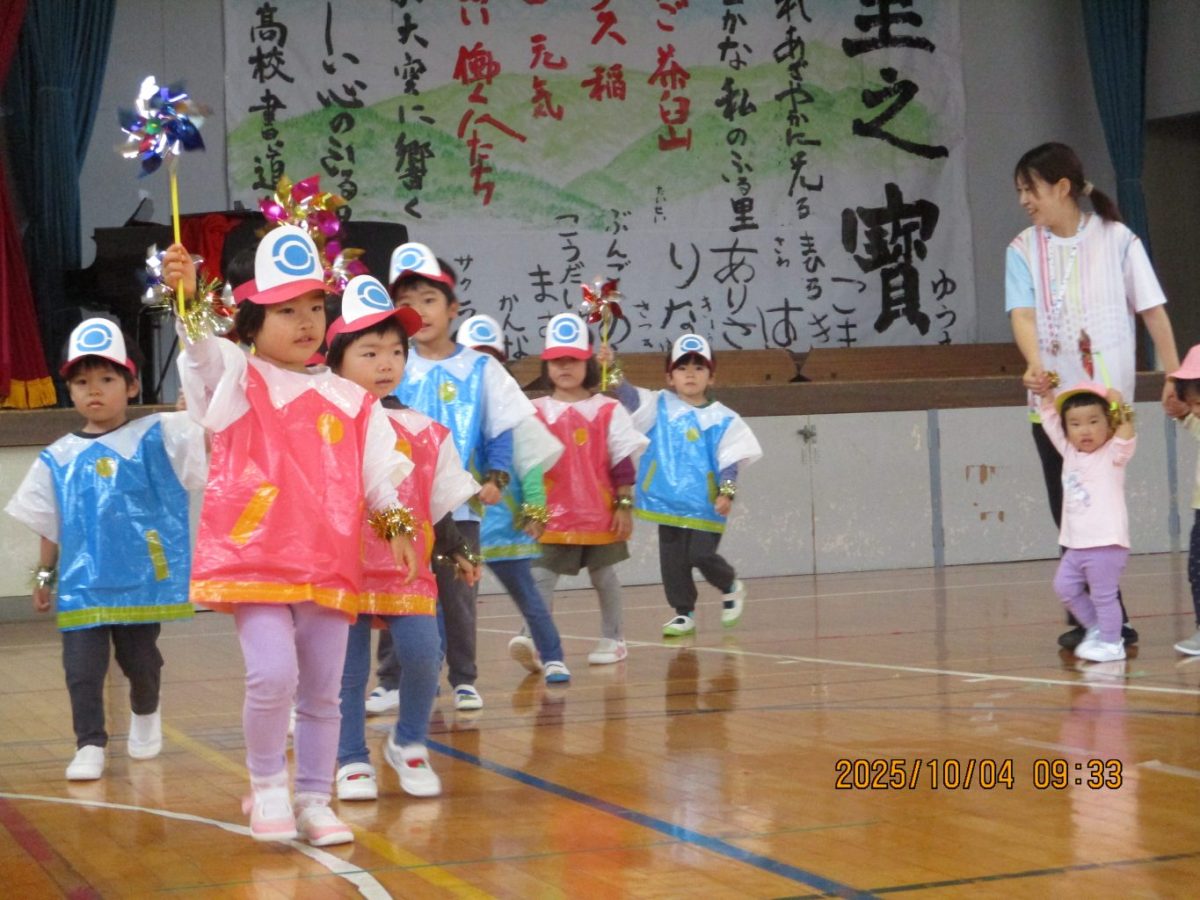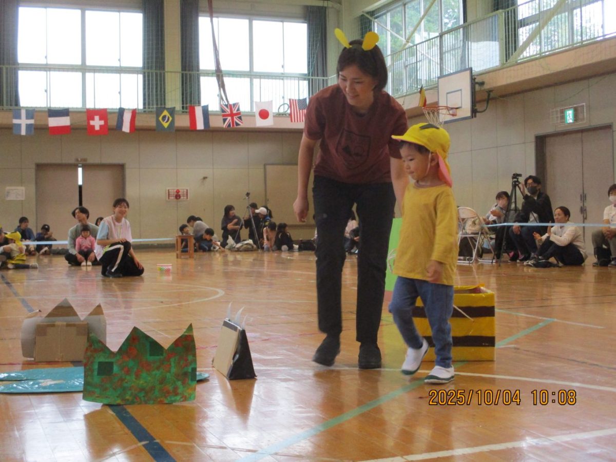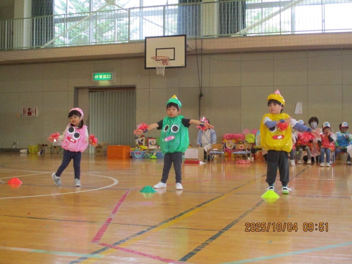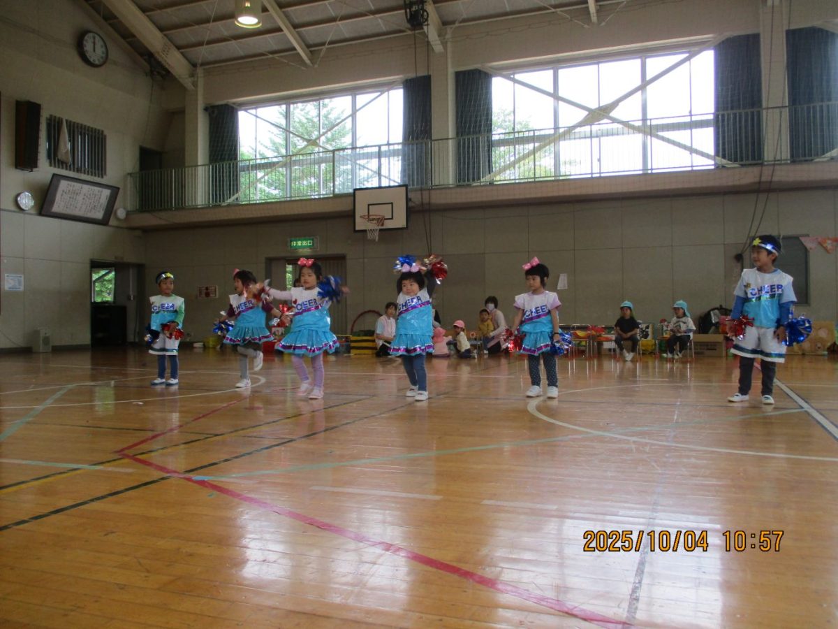 4日に運動会を行いました。今年は早朝に雨が降ったので園庭ではなく体育館で行うことにしました。