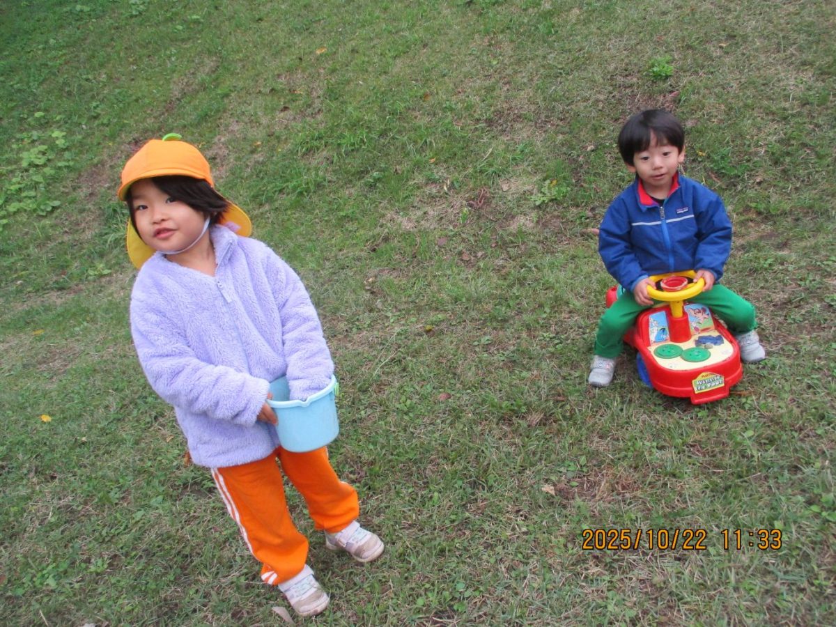 にじいろキッズらいふのお友達が保育園に来てくれたので、園庭で一緒に遊びました。