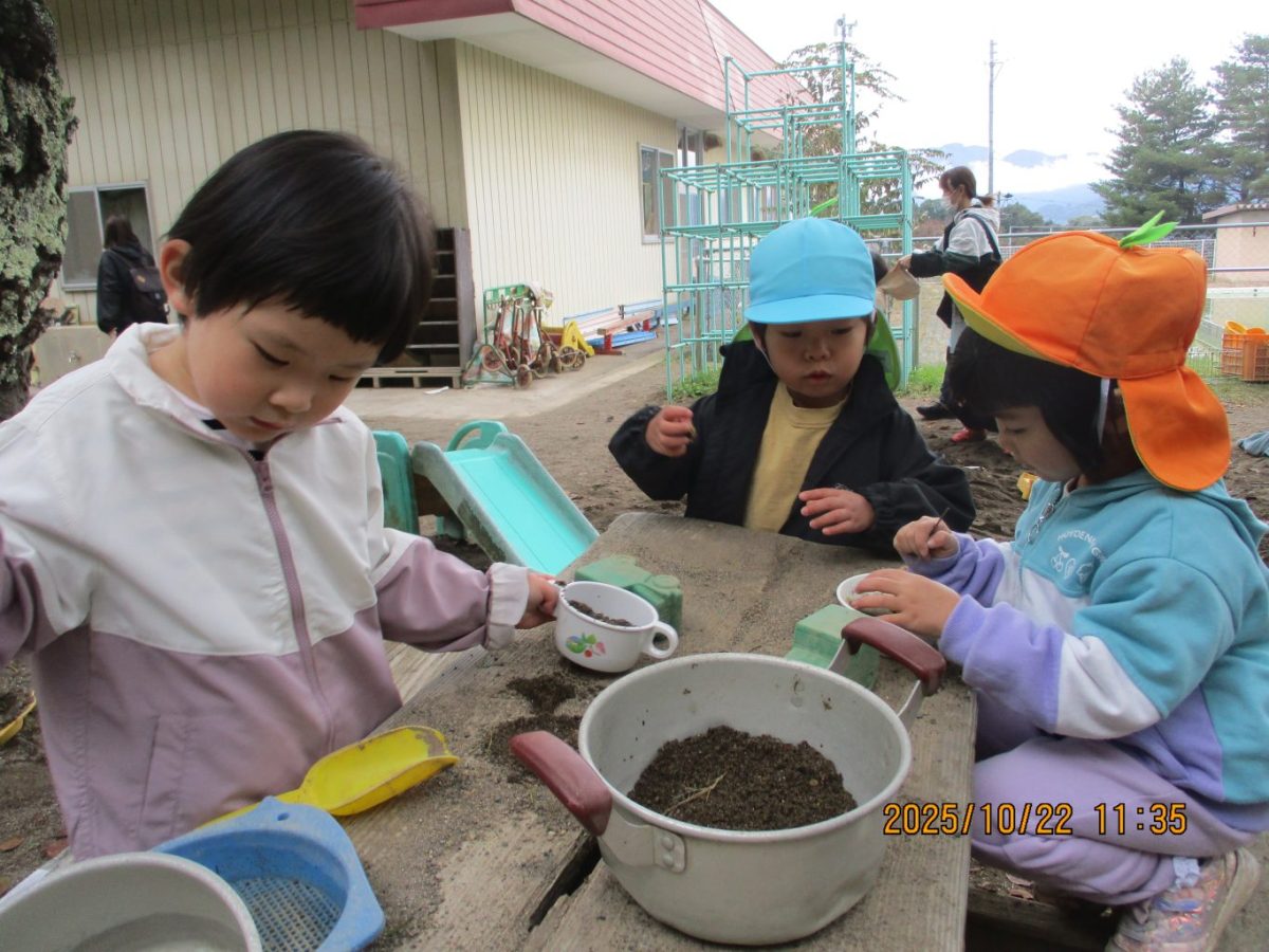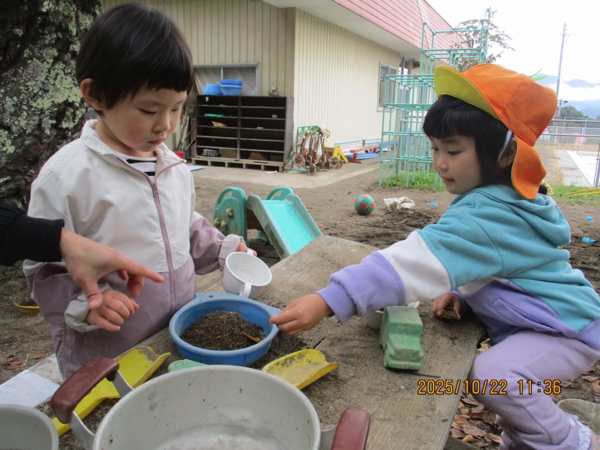 その後、自分で選んだ葉っぱ1枚をお友達に「どうぞ。」と渡していました。見ていてほっこりした場面でした。