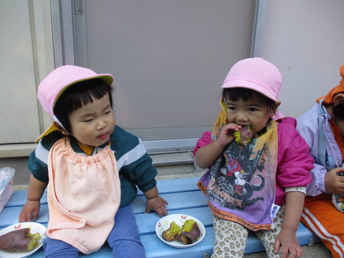 その後、待ちに待ったお芋をぱくり!あまいお芋を喜んで食べていました。