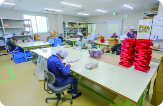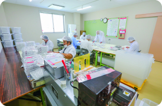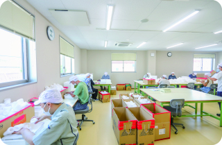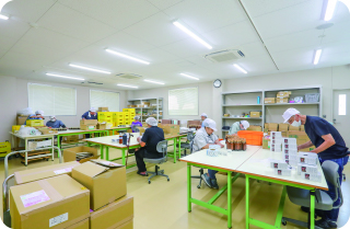 - 06 ●支援内容各企業様と単価契約を結んだ委託加工作業を、利用者の 皆さんに行っていただき、工賃をお支払いするというサービ スを中心に、様々な利用目的を持つ利用者の皆さんに対して総合的な支援を提供しています。